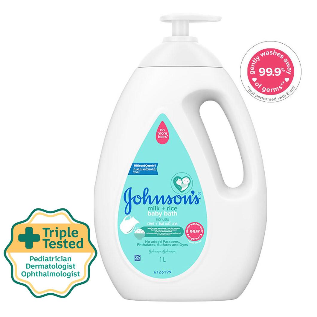 Johnson’s ® Milk + Rice bath with natural milk and rice extracts to help skin feel soft and smooth.